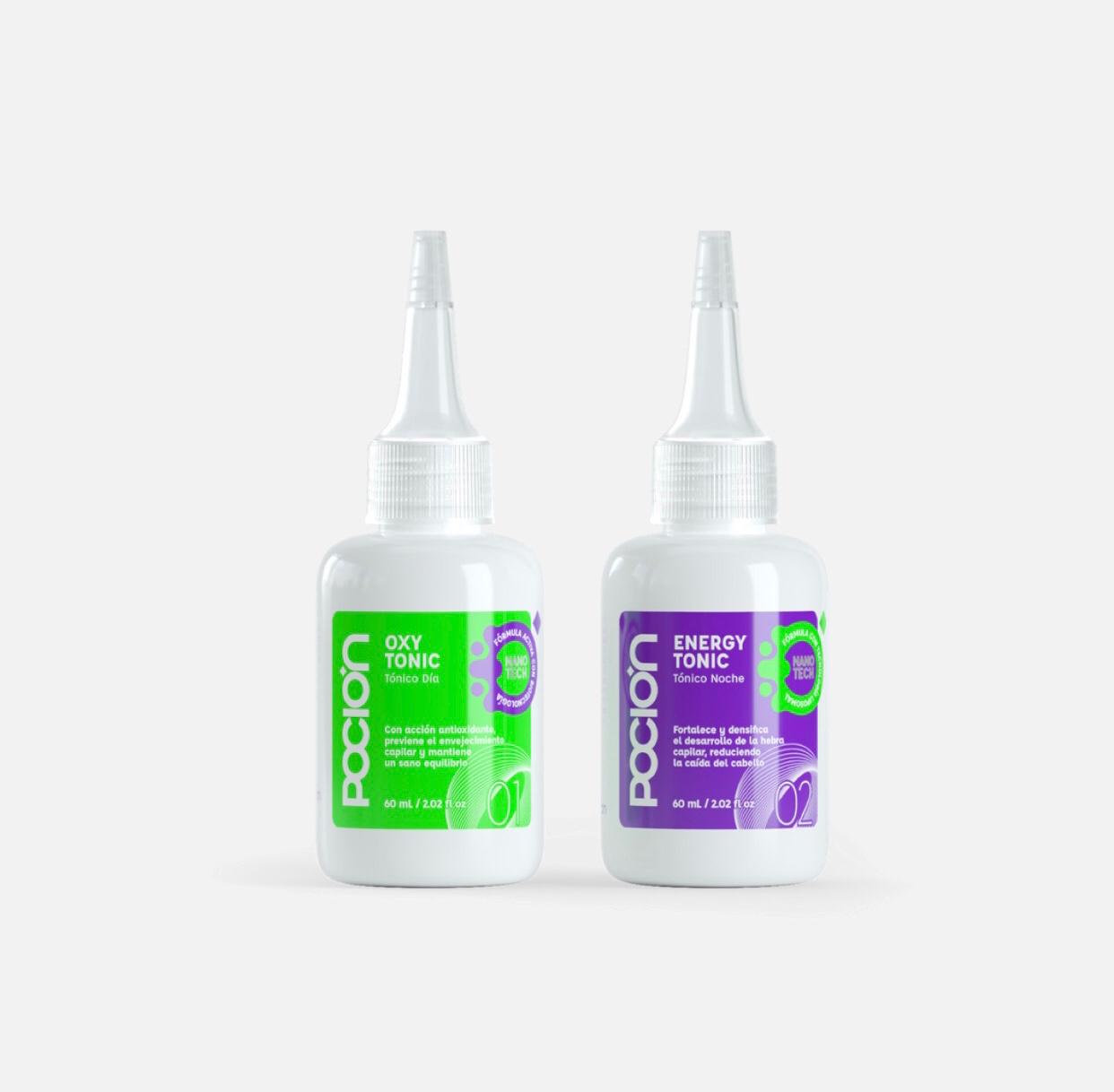 Contiene OXYTONIC para aplicar al iniciar tu rutina diurna y ENERGYTONIC en tu rutina nocturna.